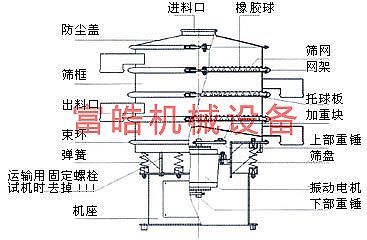 全不銹鋼旋振篩,由直立式電機作激振源,電機上、下兩端安裝有偏心重錘,將電機的旋轉運動轉變?yōu)樗健⒋怪薄A斜的三次元運動,再把這個運動傳遞給篩面。調(diào)節(jié)上、下兩端的相位角,可以改變物料在篩面上的運動軌跡。