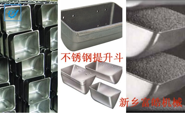 斗式提升機料斗,又稱提升機挖斗,用于膠帶提升機,鏈條提升機,板鏈提升機上,常用規格有:TD/TH160,200,250,315,400,500,630等。材質分為碳鋼,不銹鋼,塑料和尼龍四種材質。