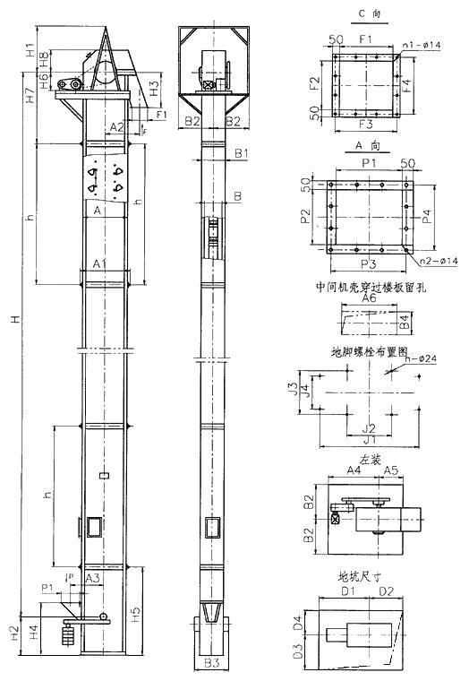 五、NE型板鏈斗式提升機安裝尺寸圖: