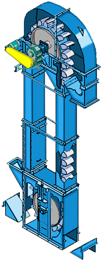 NE系列板鏈式斗式提升機由運行部件、驅(qū)動裝置、上部裝置、中部機殼、下部裝置組成。